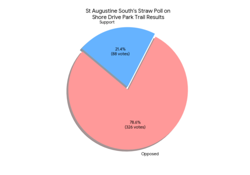 - In-person Straw Poll by the Residents of St Augustine South, 149 Households Against the Trail vs 25 Households for ItWe have the final tally from the St. Augustine South resident straw-poll held on February 11, 2026, regarding the proposed construction of the Shore Drive Park Trail. The Results The community turned out to make their voices heard. The final count is as follows: Against Construction: 149 Households For Construction: 25 Households A Transparent & Verified Process – To ensure the integrity of the ballots, a strict verification process was followed. Each household that participated received a numbered ballot to record their name, address, and vote. Before casting their choice, residents signed their ballots and logged their specific ballot number… Read more: In-person Straw Poll by the Residents of St Augustine South, 149 Households Against the Trail vs 25 Households for It